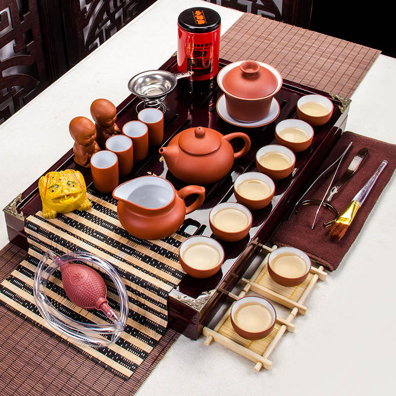 - Чахай (посудина справедливості): резервуар, куди переливається весь заварений чай перед розливом по піалах, забезпечуючи однакову міцність напою для всіх учасників;
